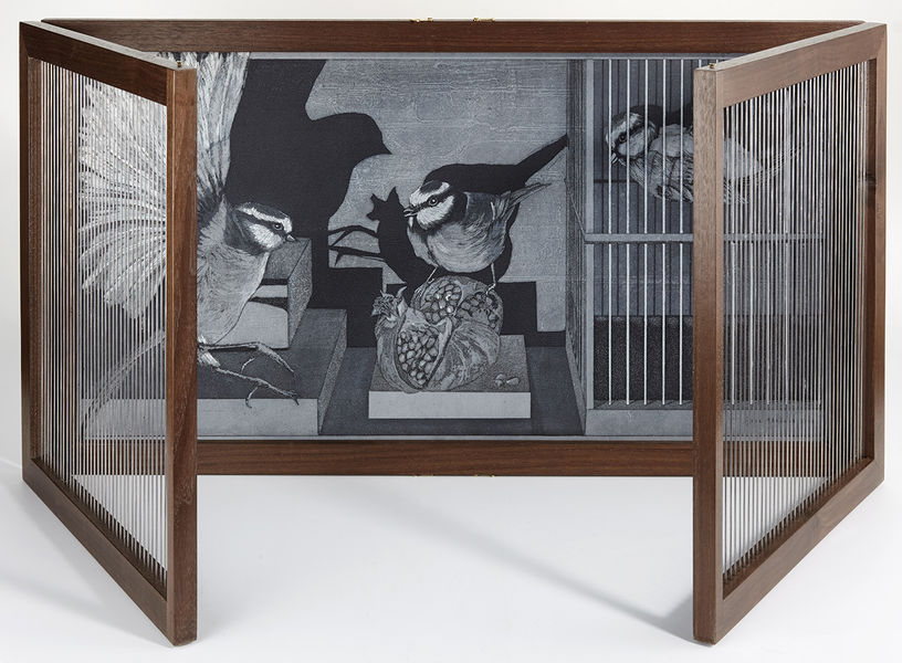 J’ai cheminé près de trois ans à travers Le Cantique des oiseaux, poème perse de Farîd od-dîn ’Attâr, auteur du xiie siècle, dans la merveilleuse traduction qu’en a fait Leili Anvar[1], pour l’interpréter avec mes propres pensées et images. Cette démarche est inspirée par l’époque chaotique que nous traversons. La quête des oiseaux représente la recherche du moi profond, l’élévation de l’âme.